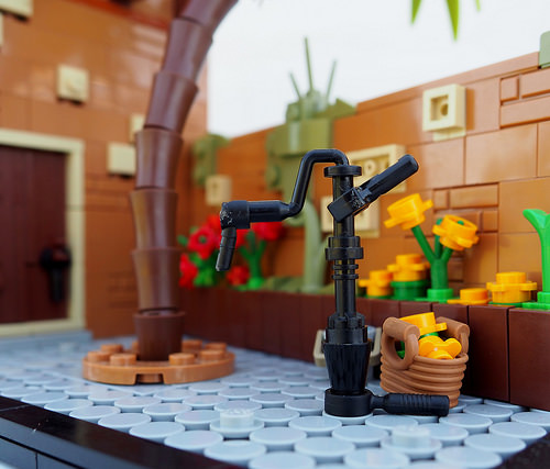 Low roofs, awnings, and earthy-toned walls present themselves to my mind when I visualize a Mediterranean city, and I did my best to capture that feel in this LEGO creation.