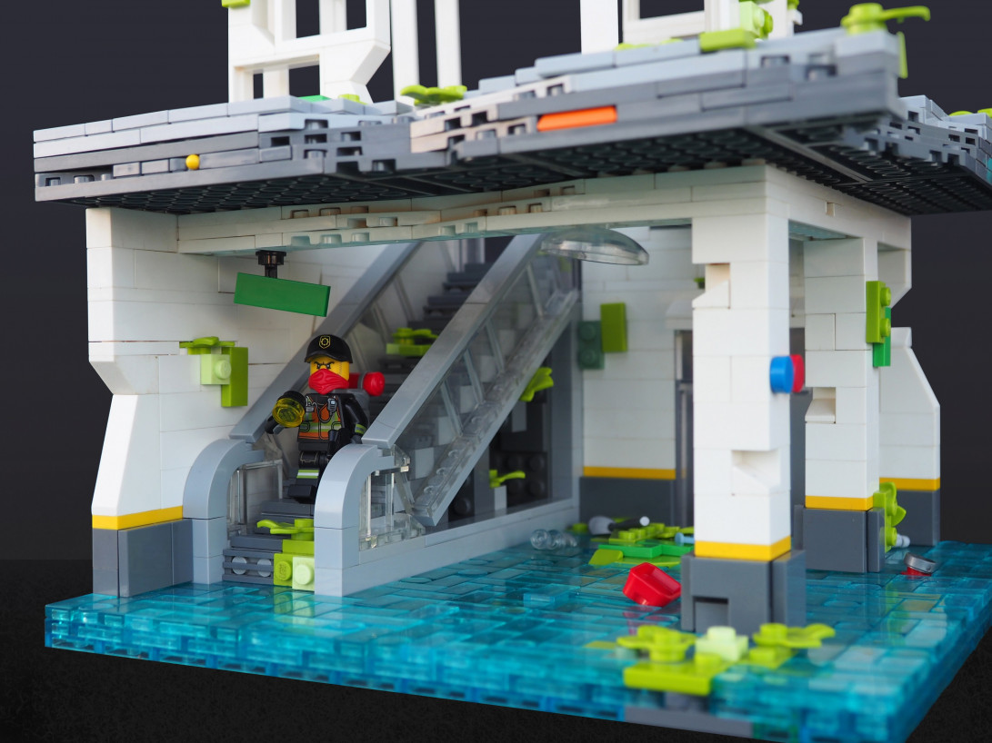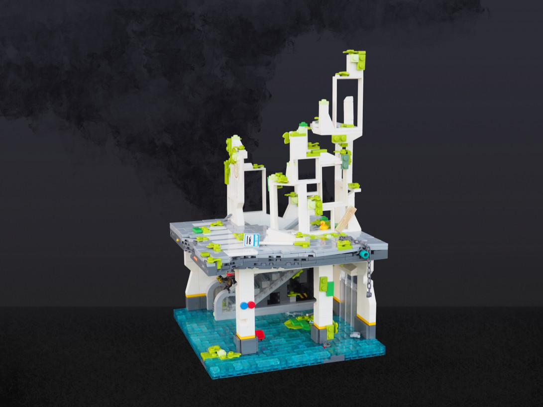 The base of the platform also had to be transparent. It’s a strongly wedged together pile of trans-clear bricks. I think it looks kind of cool.