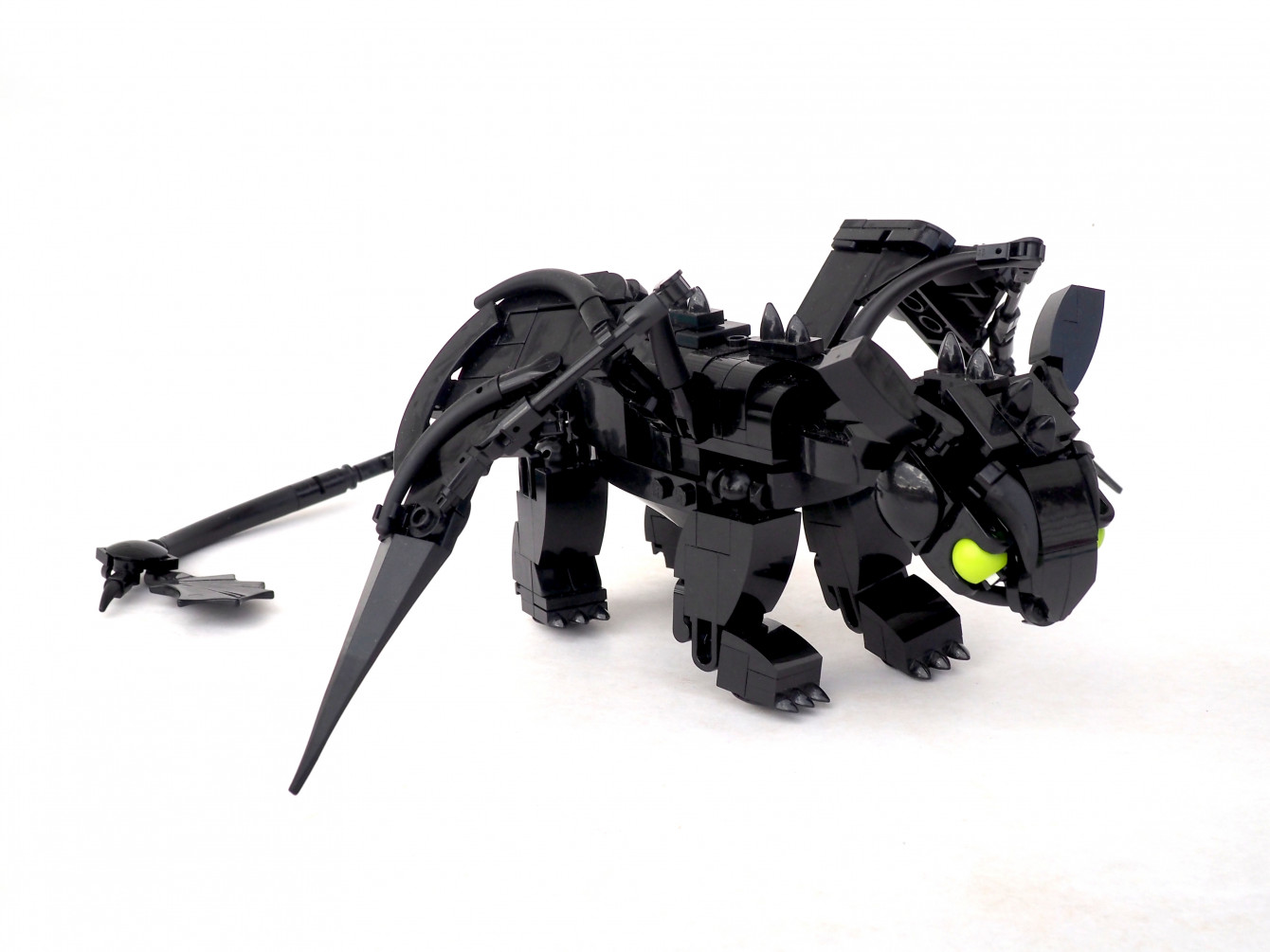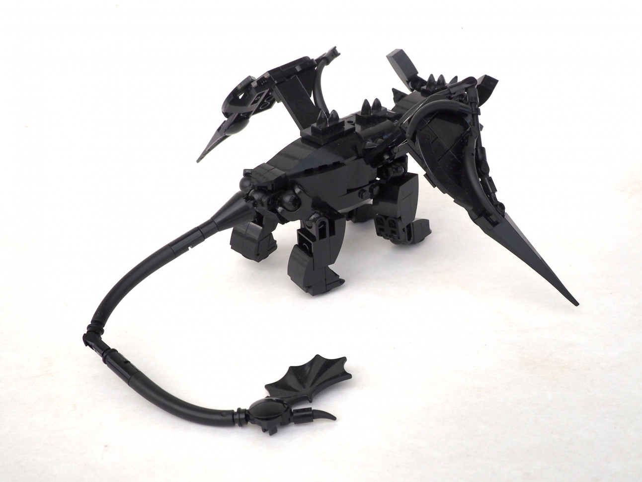 Some things that had to change specifically because of this shot were the bending wings and the bent tail. Other things had to change because I didn’t have the right parts–like the legs. Still other things changed just because there are limits to the amount of time I want to stare at someone else’s build to try to figure out the internals!